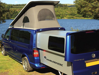 DoubleBack можно присоединить только к модели VW Transporter T5, для других фургонов он не подходит. Модуль имеет специальные подставки и может выдвигаться, в движение он приводится электричеством и производитель рекомендует сначала заводить автомобиль, чтобы он подзаряжал аккумулятор DoubleBack.