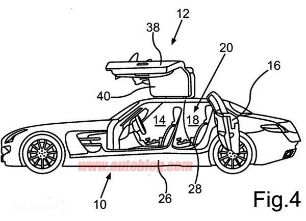 Чертёж являет собой сочетание привычных дверей-“крыльев”, небольших задних полудверей и отсутствия центральной стойки. Документация же говорит о том, что инженеры Mercedes намерены сосредоточить всё своё внимание на снижении веса автомобиля и сохранении жёсткости конструкции.