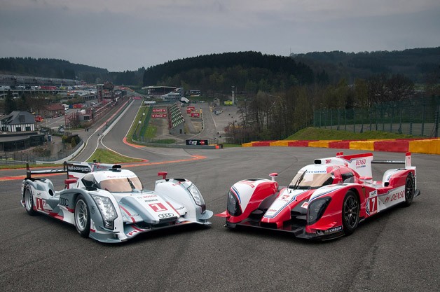 Кроме того, Toyota TS030 Hybrid нашла время для того, чтобы совместно с Audi R-18 e-Tron Quattro попозировать перед фотокамерами, предвосхищая свой гоночный дебют. Несмотря на то, что оба автомобиля оснащаются гибридными двигателями, первые модели будут иметь совершенно иную конфигурацию двигателей.