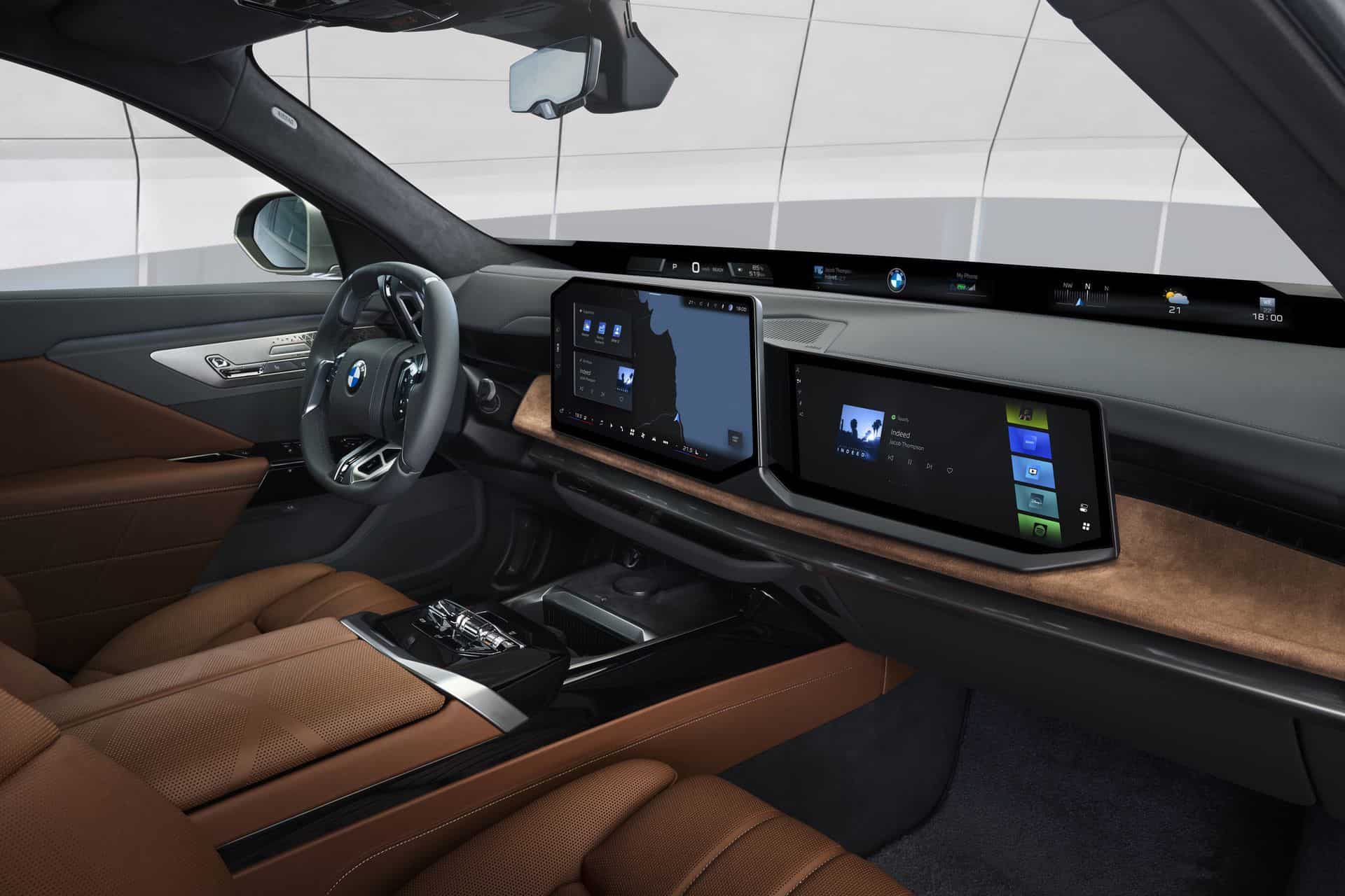 BMW делает ставку на минимализм: количество физических кнопок сведено к минимуму, а управление осуществляется через сенсорные панели и голосовые команды.