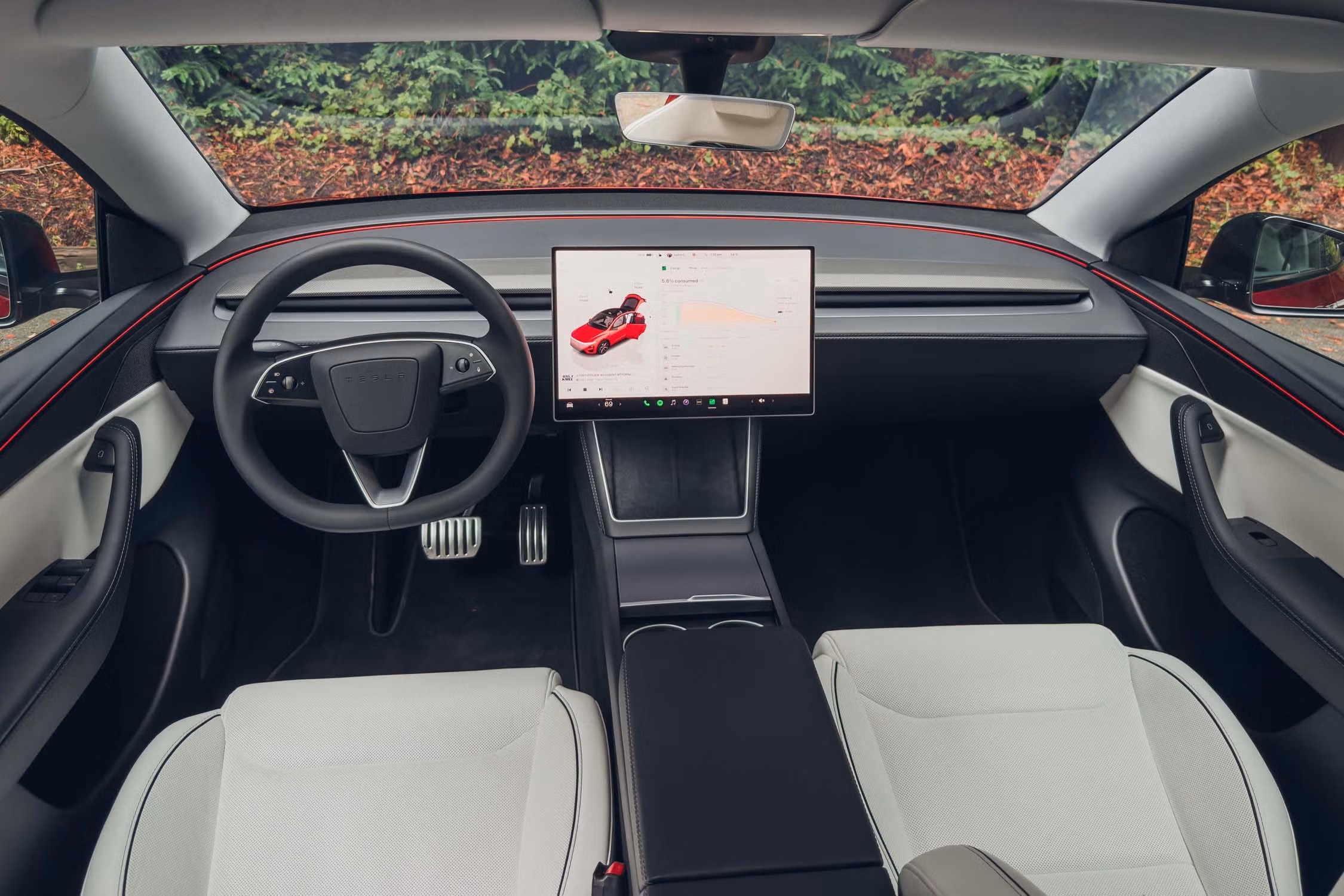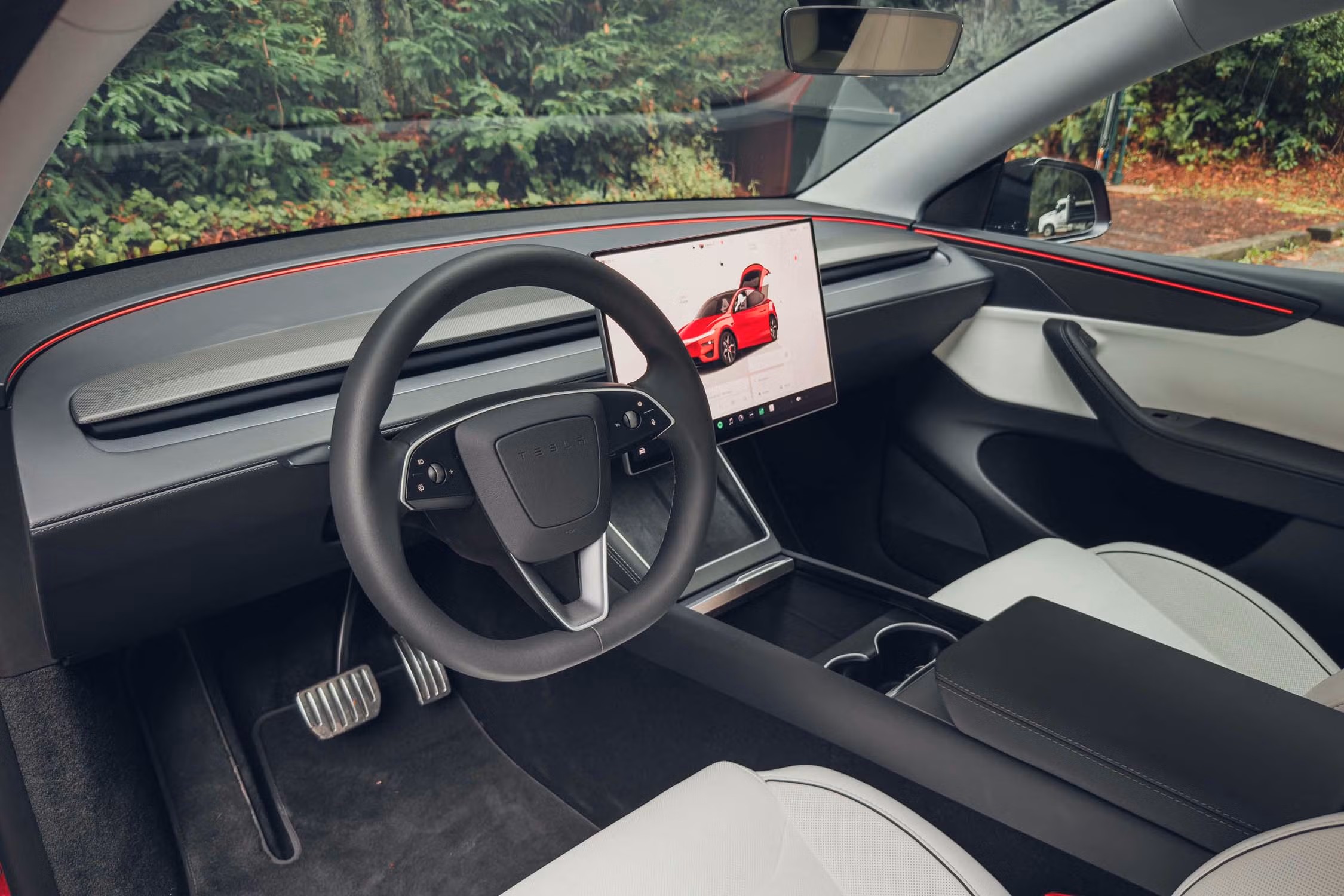 В салоне Tesla Model Y Performance 2026 делает шаг от «жёсткого спорткара» к семейному кроссоверу с характером. Спереди установлены новые сиденья с выраженной боковой поддержкой и дополнительной опорой для бёдер, а в центре — увеличенный до 16 дюймов сенсорный дисплей с более высокой чёткостью и насыщенными цветами.