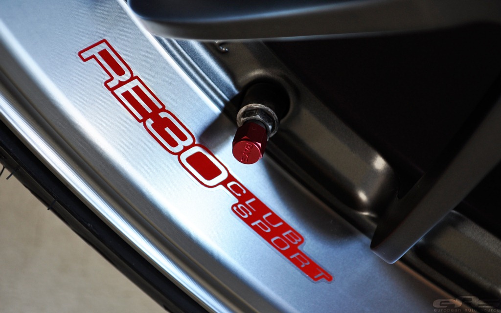 При подборе колесных дисков для этого проекта выбор пал на Volk RE30 club sport (18×9.5 inch ET22 передние и 18×11.0 inch ET18 задние). Шины Hankook RS3 (265/35/18 и 285/35/18, передние и задние соответственно). Также были установлены 5-мм передние проставки (Macht Schnell), усиленные колесные шпильки (90мм) и комплект колесных гаек с секретками Project Kics R40 (в хроме).