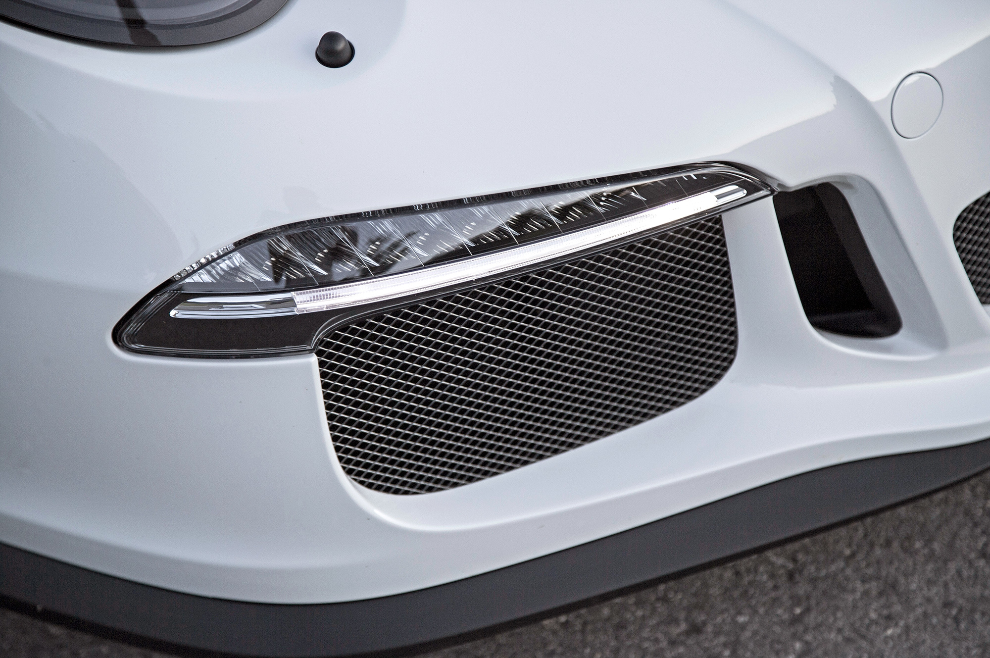 Серебрянка, белая эмаль да два набора полосок — вот и весь выбор цветов. Бампер от GT3, но сплиттер у «эрки» свой, менее эффективный. Снижение прижимной силы сзади потребовало и разгрузки передка ради сохранения аэродинамического баланса.