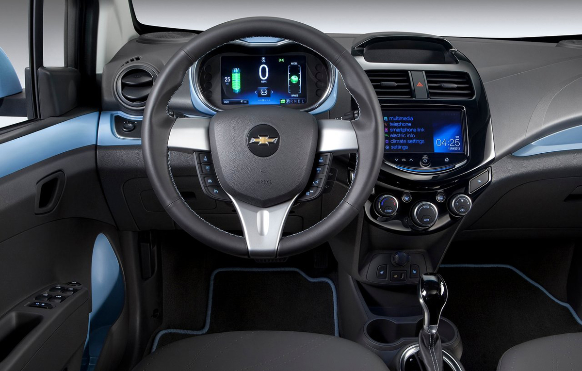 Pe lângă noutăţile tehnice, noul Chevrolet Spark EV vine cu cinci noi nuanţe de caroserie (Electric Blue, Black Granite, Summit White, Silver Ice şi Titanium) şi cu noul sistem multimedia MyLink, care a debutat în premieră europeană pe crossover-ul Trax, la Salonul Auto de la Paris. Acesta este acompaniat de un ecran touchscreen de şapte inch.